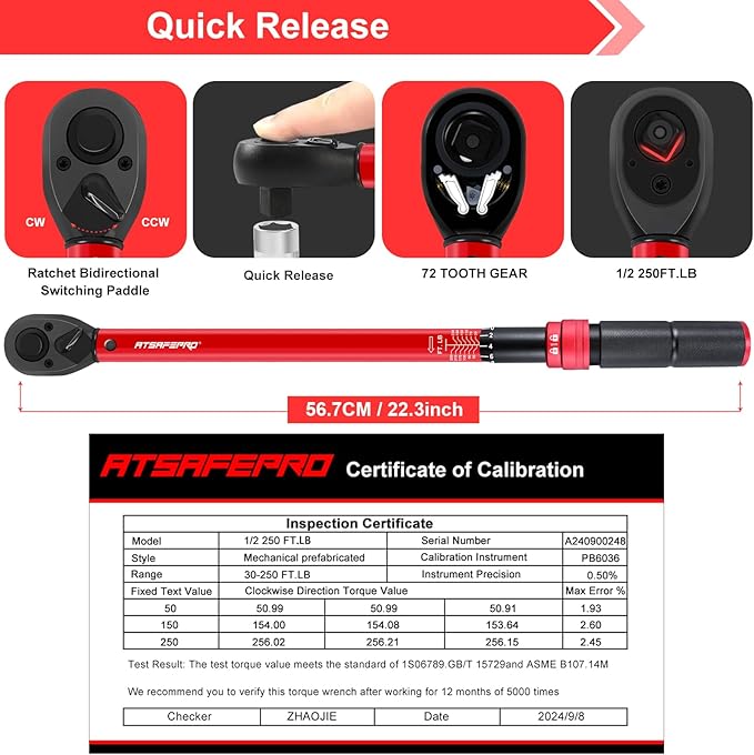 - 1. PRE-CALIBRATED ACCURACY: The torque wrench 1/2 drive 250 ft-lb is shipped pre-calibrated to +/- 3% accuracy, ensuring reliable performance right out of the box for all your torque applications.