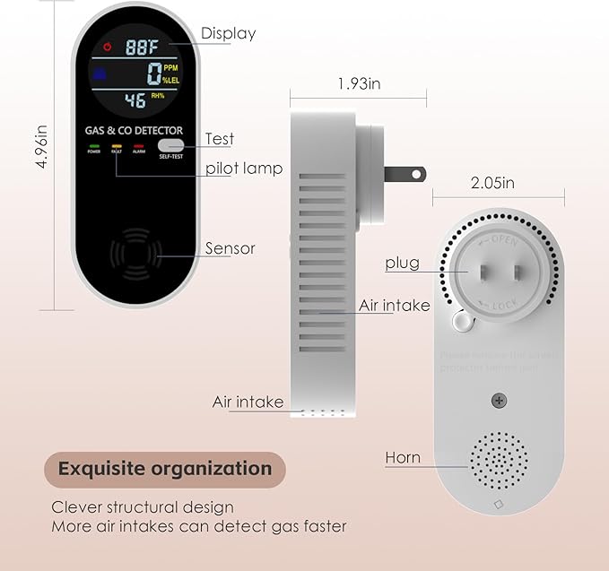Natural Gas Detectors &Plug in Carbon Monoxide Detector, 4 in 1 Co and Gas Detector Temp Humidity Monitor,Propane, LPG, Gas Detector for Home,Kitchen,Hotels,RV.(2 Pack)