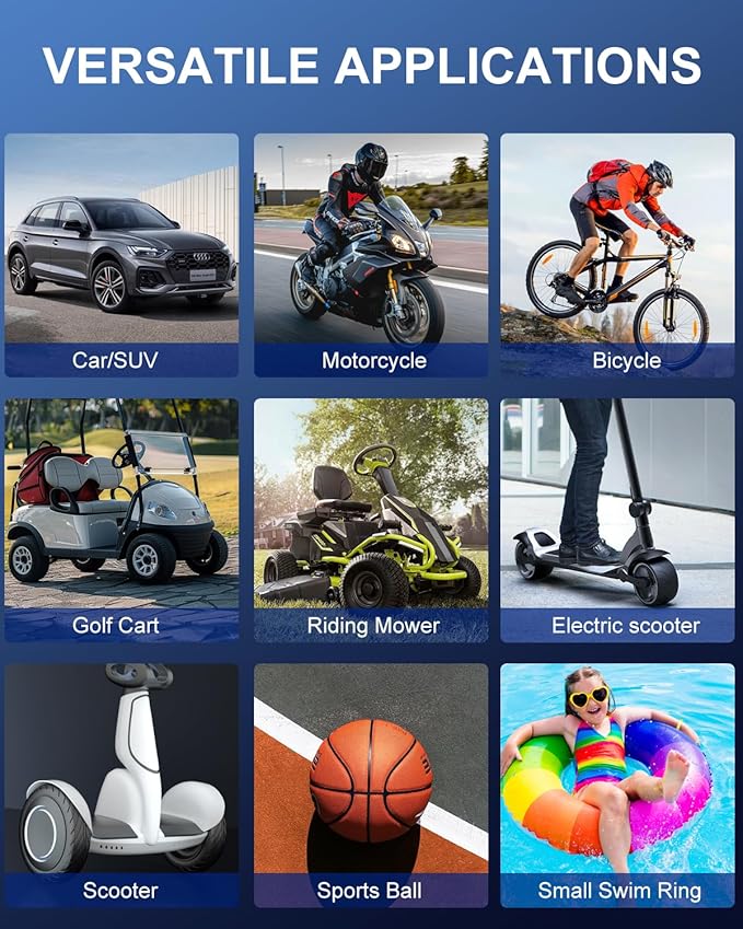 - SMART TIRE INFLATOR: Teffim portable air compressor features a upgraded tire pressure sensors. It will automatically shut off upon reaching the target pressure, providing a safe and reliable use guarantee and eliminating concerns of overinflation