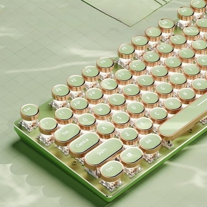 - 【Retro Typewriter Mechanical Keyboard】:The typewriter gaming keyboard has mechanical custom pink switches that feature a smooth linear feeling, and low resistance without a tactile bump feel. round keycaps of the punk mechanical keyboard look like a classical typewriter. Keycaps have a matte texture and upgraded touch feel and the sound is quiet when the button is pressed lightly giving you a comfortable typing feeling and a stable click touch.