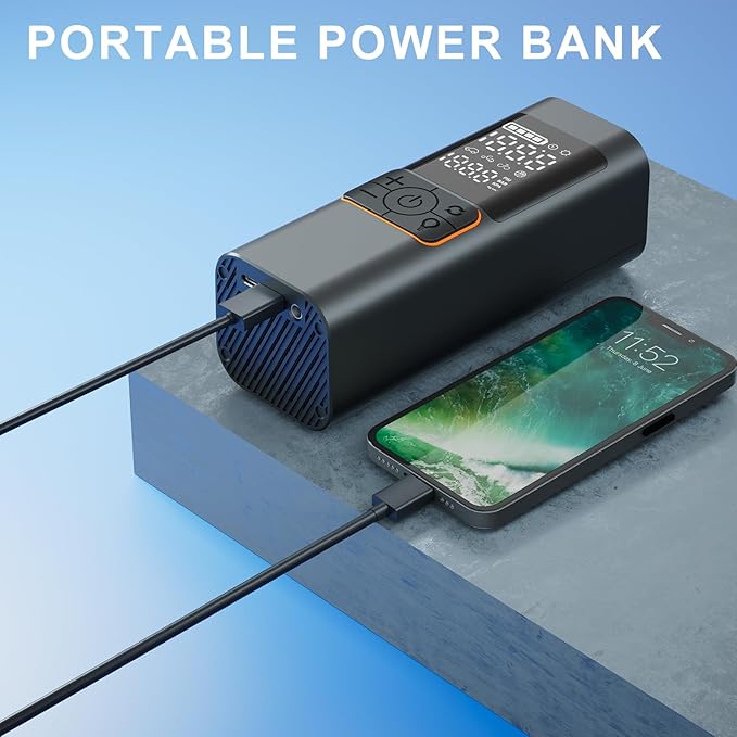 - 【180psi Tire Inflator】our digital air pump supports smart preset & auto shut-off without repeated adjustment and check. With the unique intelligent chip, which is more powerful, more stable and less noisy, the tire inflator provides fast and proper inflation to various tires, balls, etc. Friendly design with real-time data reading, detachable extended air hose and 4 optional unit switching for convenience.