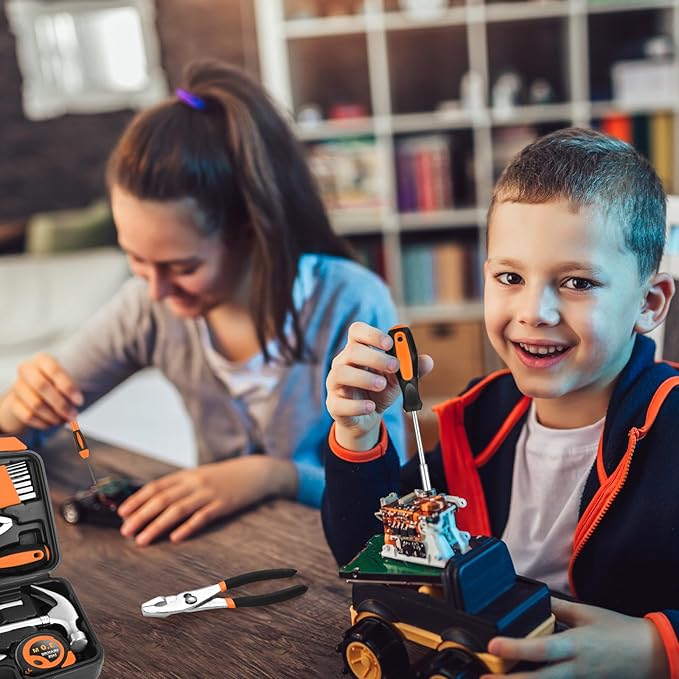 39 Piece Household Tool Set General Repair Small Hand Tool Kit Basic Home Tool Set in Toolbox Storage Case for Home Garage Office College Dormitory Use, Orange