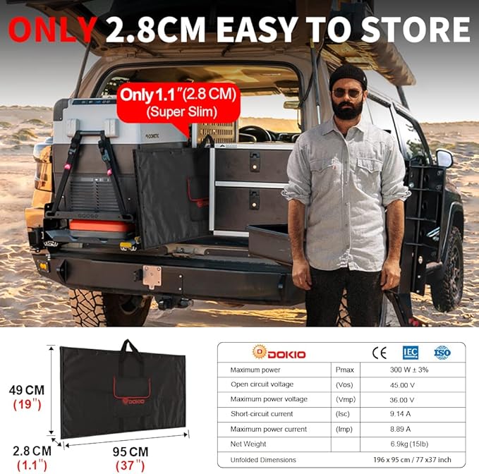 DOKIO 300W 36V Portable Folding Solar Panel Kit for 24V Batteries & Power Stations Lightweight Charger for AGM, LiFePO4, Deep Cycle — RV, Trailer, Truck, Boat, Camping, Van, Emergency