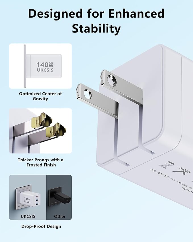 - What You Get: 1 x UKCSIS 140W USB C Charger, 1 x 100W USB C Charging Cable with E-Marker for fast charging, and 1 User Manual. Trusted by over 50,000 users, the UKCSIS charging station is not only a practical solution but also a great gift for family, friends, and colleagues. Plus, enjoy peace of mind with our 24/7 friendly customer service.