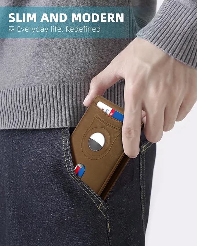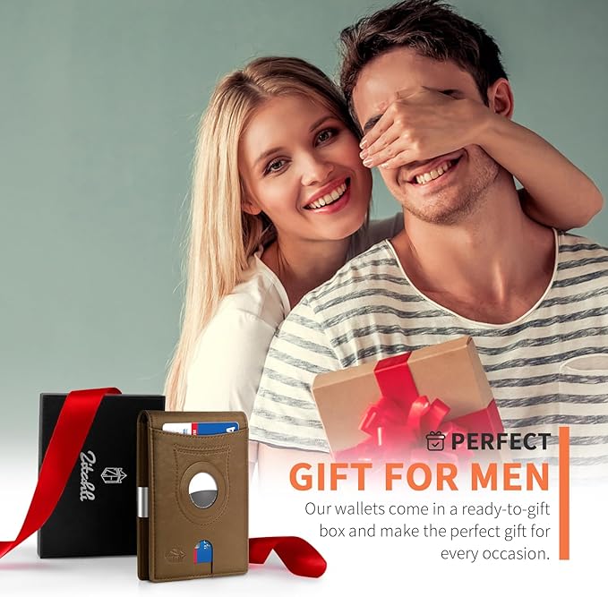 Zitahli Men's Wallets Airtag Holder Slim Rfid Leather with Gift Box