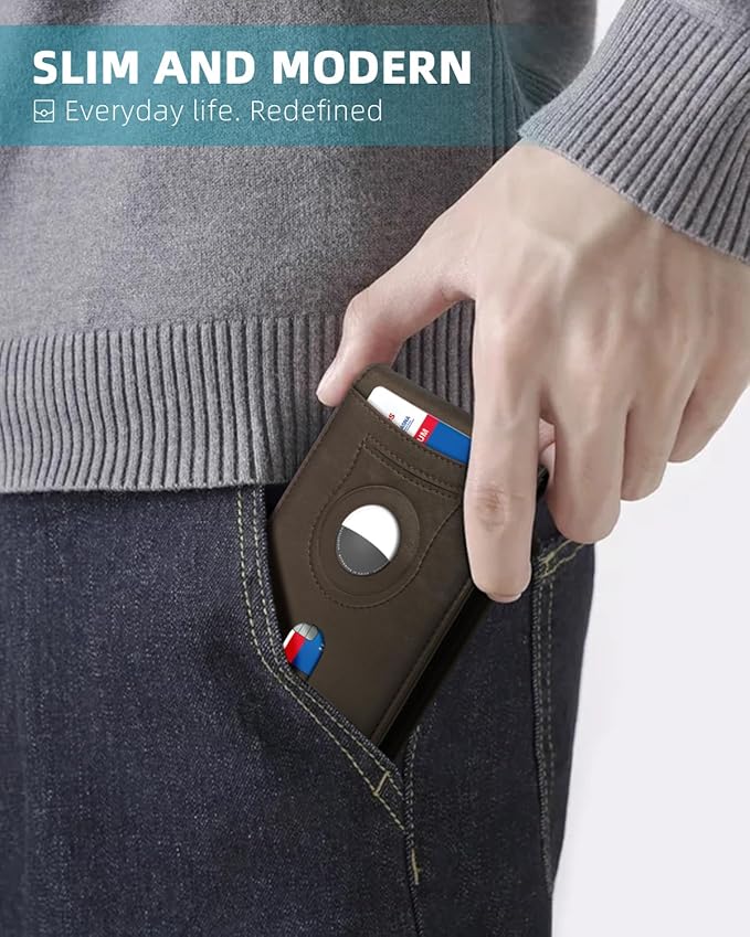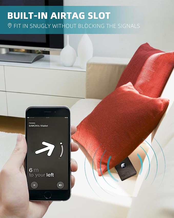 - ๐๐๐๐๐ ๐๐๐๐ ๐๐๐ ๐๐๐๐๐-๐๐ ๐๐๐๐๐๐๐๐ - Meet our latest slim airtag wallet with upgraded money clip! Sized 4" x 3.5" with money clip, this slim wallet for men is equipped with refined hinged money clip, which takes up less room than the wide money clip, reducing the bulk. It features ๐ญ0 ๐ฐ๐ฎ๐ฟ๐ฑ ๐๐น๐ผ๐๐ with quick access slot on the front, 10 on the sleeves and 1 built-in air tag pocket on the back.