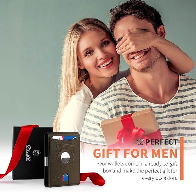 Zitahli Men's Wallets Airtag Holder Slim Rfid Leather with Gift Box