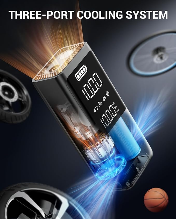 - Intelligent Pressure Control & Safety Features: Equipped with a memory pressure mode, the AP18 cordless tire inflator remembers your preferred settings and automatically shuts off once the desired pressure is reached, preventing over-inflation. It is also equipped with overheat protection and a multi-port cooling system, ensuring safe and reliable operation during use.