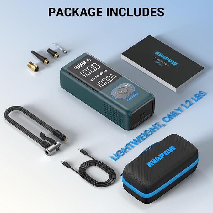 - Highest Rated Tire Inflator: Equipped with a memory pressure mode, the AVAPOW digital tire inflator remembers your preferred settings and automatically shuts off once the desired pressure is reached, preventing over-inflation. It is also equipped with overheat protection and a multi-port cooling system, ensuring safe and reliable operation during use.