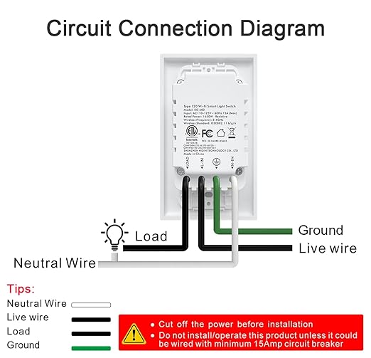 - 【Warm Tips】It need Neutral wire to work and use as a single-pole light switch. Not compatible with 3-way or dimmer smart switch. Please know that it only support 2.4Ghz WiFi.