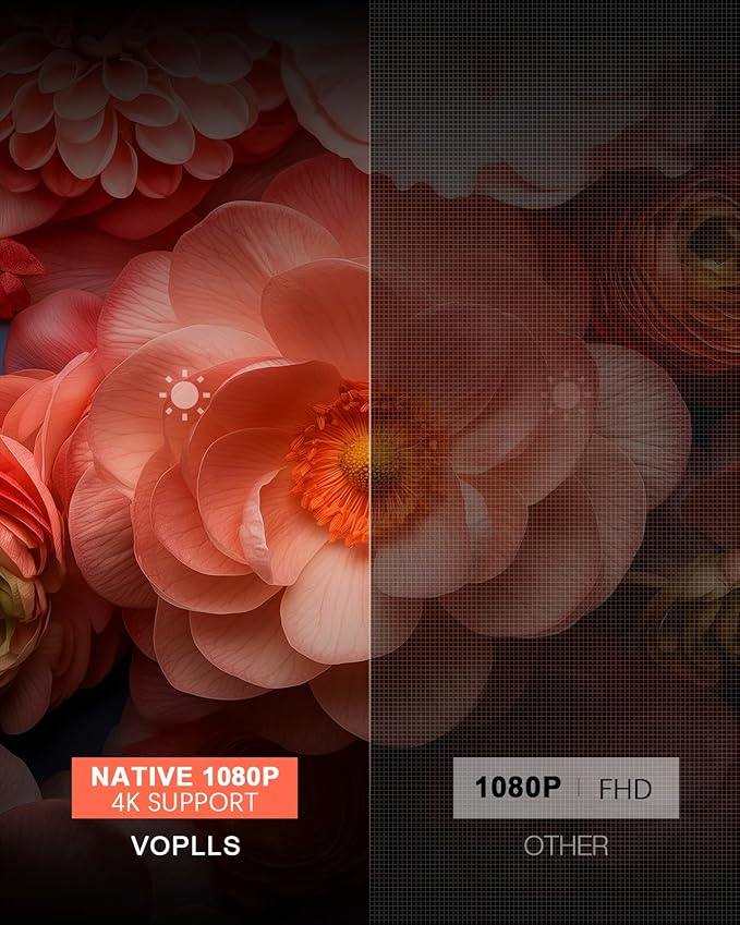 - 【Authentic 290 ANSI Brightness】The VOPLLS Mini Projector delivers certified brightness (compliant with ISO 21118 standards), achieving a true 290 ANSI lumens—equivalent to the 1000 ANSI lumens claimed by other brands.We rigorously test each light beam using a 9-point measurement system, eliminating "light source" trickery and peak mode deception. No exaggerated number—only honest brightness. Experience vivid, precise visuals in bedrooms, living rooms, and beyond.