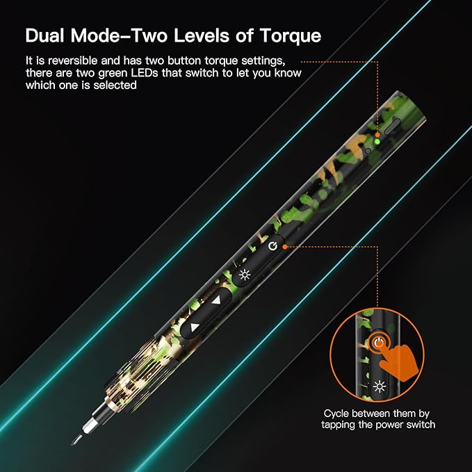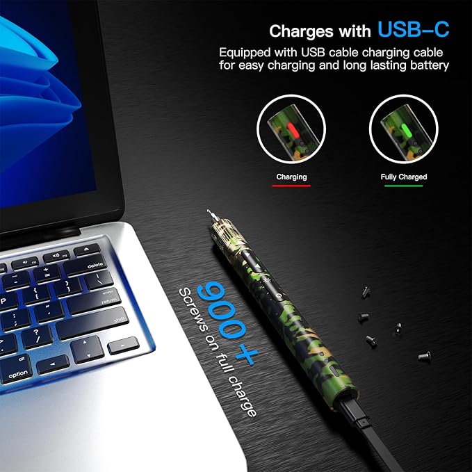 - Electric precision screwdriver set with with dual mode and two speed modes, built-in LED light, 3 LED lights can illuminate the light in dim environments; type C USB charging port for convenient charging and long standby time, Electric Screwdriver battery is lasts a while, and charges pretty quick