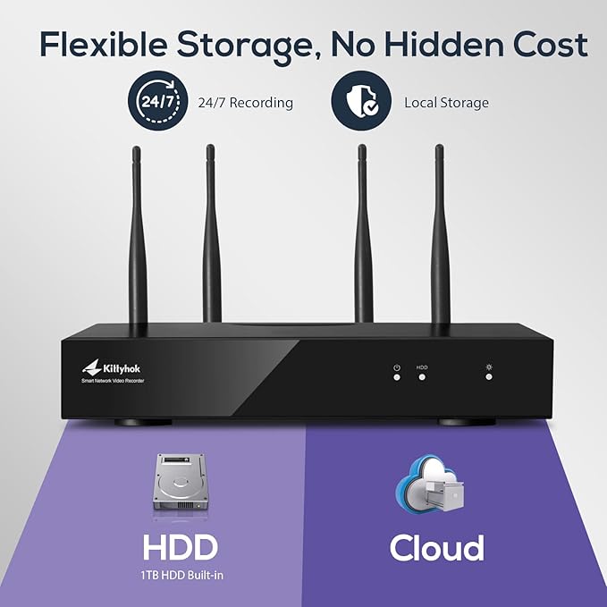 - 24/7 Recording & No Monthly Fee: Get peace of mind with nonstop 24/7 recording to ensure you never miss a moment. Clips can be saved on the built-in 1TB HDD (expandable to 6TB) and Cloud (optional) for easy access