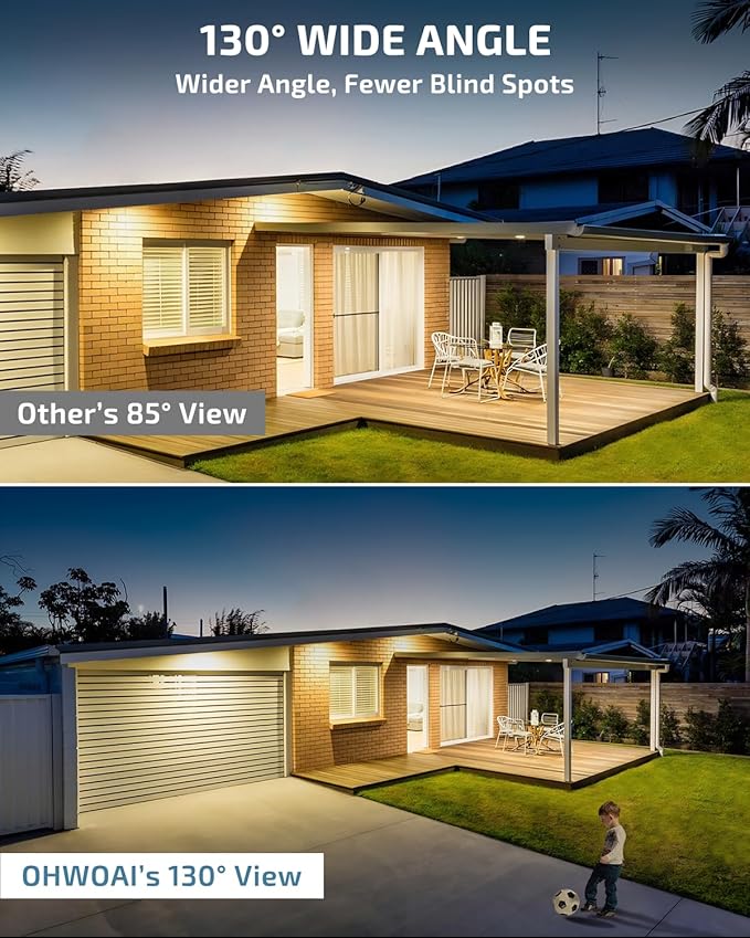 - 《130°Wide Angle Lens》Our wireless home security system featuring a wide 122-degree angle lens. With expansive coverage,the camera kit for home captures every detail for comprehensive security. Ideal for homes, offices, or businesses, ensuring nothing escapes your watchful eye.