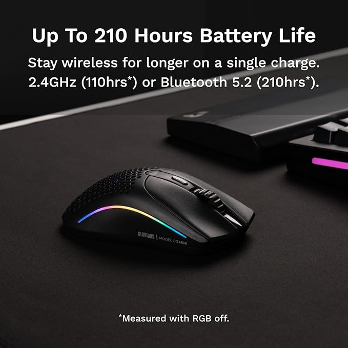 Glorious Model O 2 Mini Wireless Gaming Mouse: Superlight 57g, up to 210hr Battery, Dual Wireless 2.4GHz and Bluetooth 5.2, 26K Optical Sensor, 80M Clicks, 6 Programmable Buttons, FPS Mouse, Black