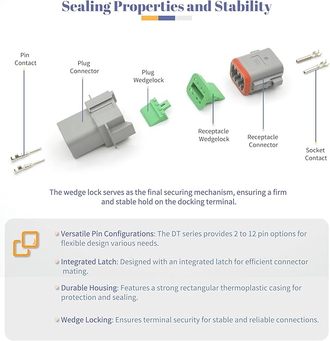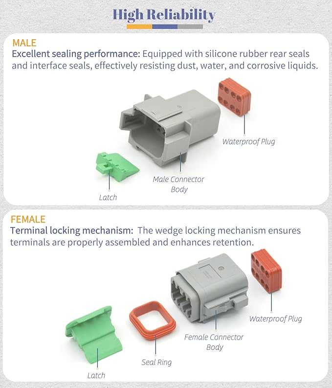 - 【Sealed for Harsh Environments】: The DT connectors are designed to be waterproof and dust - resistant, ensuring reliable performance in harsh conditions. The upgraded sealing features and durable materials make this kit a reliable choice for protecting your electrical connections.
