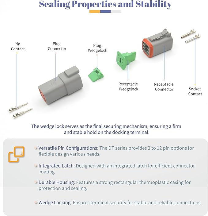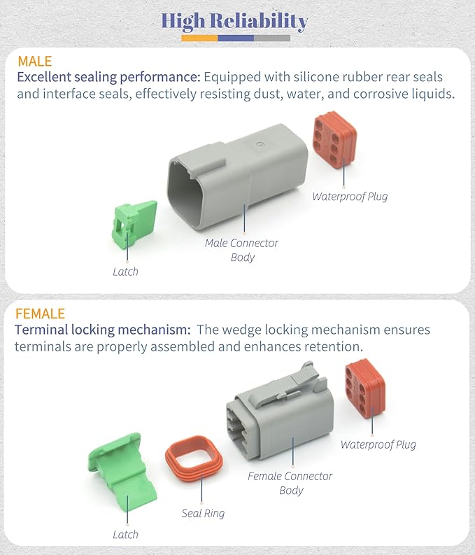 - Sealed for Harsh Environments】 The DT connectors are designed to be waterproof and dust - resistant, ensuring reliable performance in harsh conditions. The upgraded sealing features and durable materials make this kit a reliable choice for protecting your electrical connections.