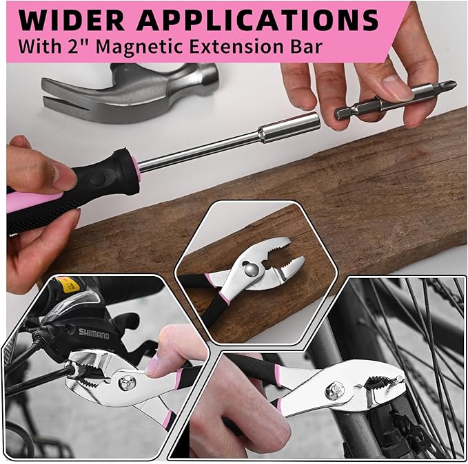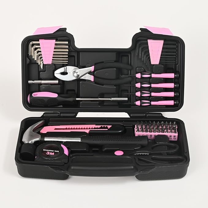 58-Piece Pink Tool Kit Basic Home Repair Tool Set, General Household Hand Tool Kit,Small Tool Kit with Plastic Toolbox Mini Tool kit for Women, Office & College Repairs