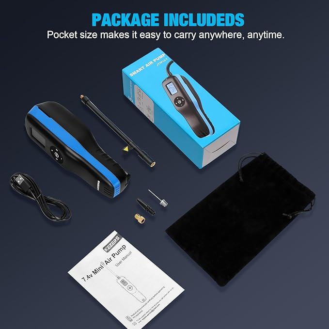 - 🚗【High Performance & Rapid Inflation Tire Inflator】The KEZERS tire inflator portable air compressor is designed with a powerful motor that delivers up to 160 PSI and delivers fast and efficient inflation, allowing you to inflate car tyres, motocycle tyres, bike tyres and sports equipment in just minutes, so you can get back to doing what you love soon!