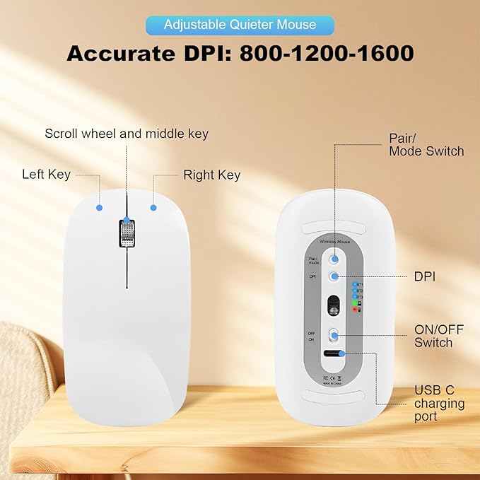 - Precision Control with Adjustable DPI – Whether you’re working on design projects or gaming, this Bluetooth keyboard and mouse set offers 3 adjustable DPI levels (800/1200/1600) to give you more precise control, making it ideal for your Mac keyboard and mouse needs.