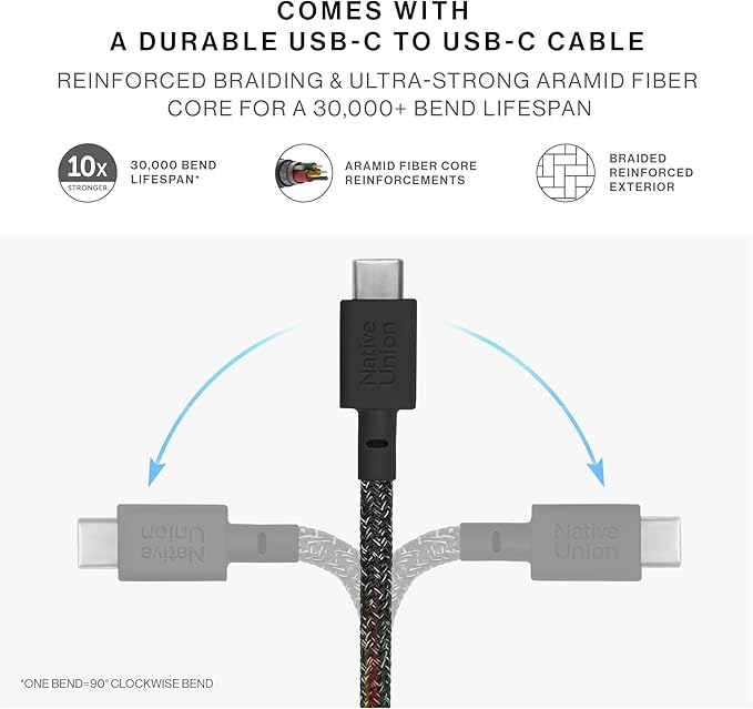 - UNPARALLELED DURABILITY: Highly resistant cable with 100% recylced PET reinforced braiding, 100% TPU housing, and an ultra-strong aramid fiber core for an unmatched 30,000+ bend* lifespan. O-Flex strain relief design at connector joint absorbs 2x more stress than regular strain relief.