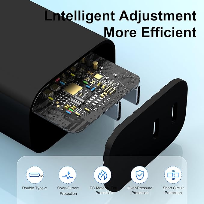 - 【Dual USB C Charger】:With 2 Port USB C Power Delivery, you can save a lot of outlet spaces while you have multi devices. Fast charge your devices from phones, watches, Pad, and more usb-c accessories.