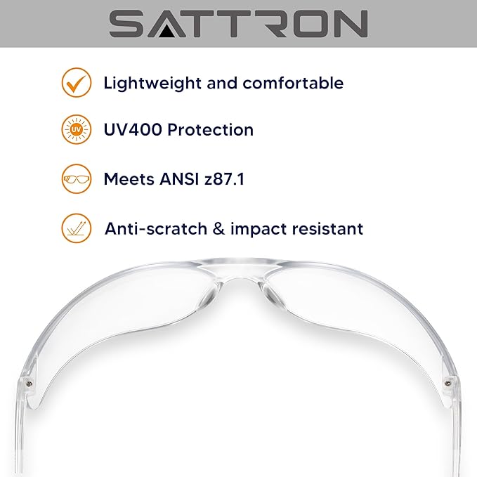 - 【WIDE APPLICATION】SATTRON UV Protection Glasses fit most adults and teens. Perfect for construction, shooting, biking, hunting, fishing, dentistry, lab, painting and DIY projects. We promise to warrant our products for 90 days! Any quality problems, please message us.