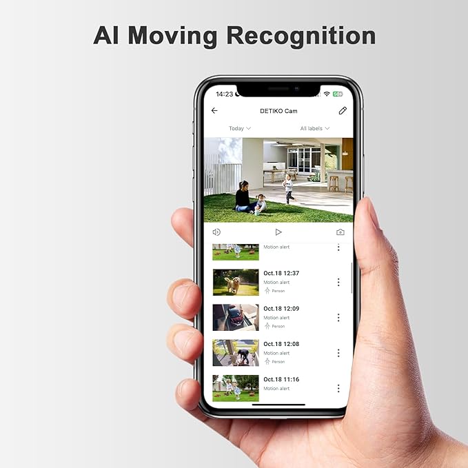- AI Motion Detection: The security cameras can capture moving objects. When a suspicious enter the monitoring range, the security cameras will auto sound an alarm and send real-time notifications to the APP. The security cam can safeguard the security of your pet like cat and dog, as well as your room, garage, door, yard, house, and other areas.