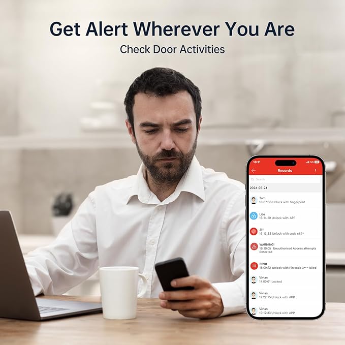 - 【No Charge Versatile APP】Just controll the lock by app without subscription. Along with 250+ multiple user codes that can be remotely generated and shared one-time, permanently, Timed, One-timed,Custom and Recurring Passcode. Share ekey or code to friends, family members, visitors, flexible and safety. Up to 100 fingerprints and 1000 key fobs (package includes 2 IC cards) can be stored on this deadbolt smart lock.