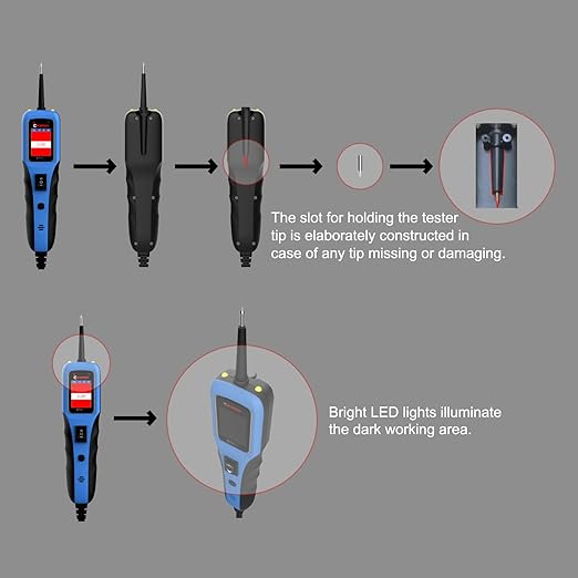 - 🔧【All-in-One Probe Tester Tool】Complete Automotive Power Diagnostics Probe 3 Tester.Test voltage, polarity, AC/DC current, duty cycle, resistance, locate short/open circuits. Diagnose car, truck, motorcycle, trailer circuits in seconds like premium brands. The auto circuit tester with 160x128 TFT display tests all 6-30V vehicle electrical systems