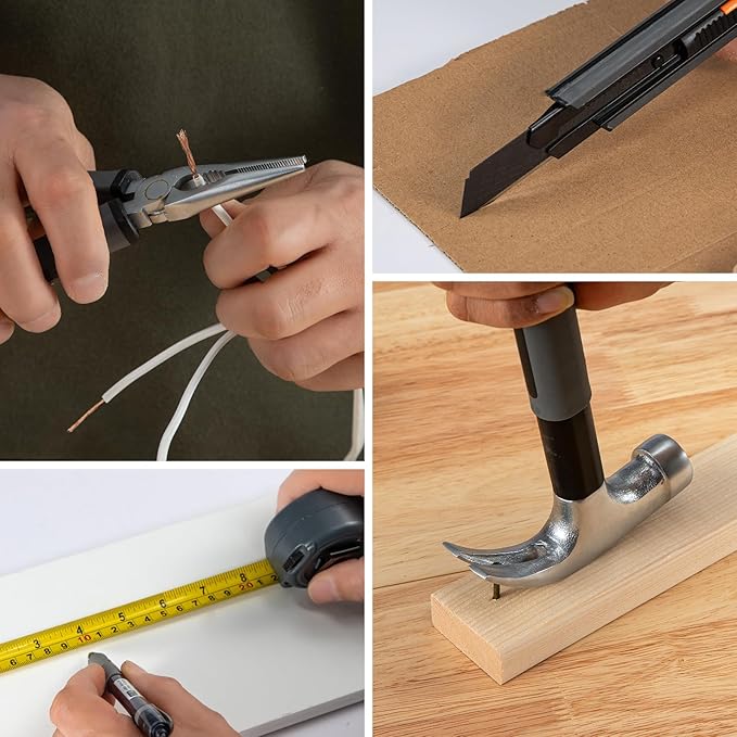 - 【Ergonomic & Safe Design】TPR/PP non-slip handles for comfort, 6-inch pliers with 58-60HRC cutting edges for precision. tool set is RoHS compliant.