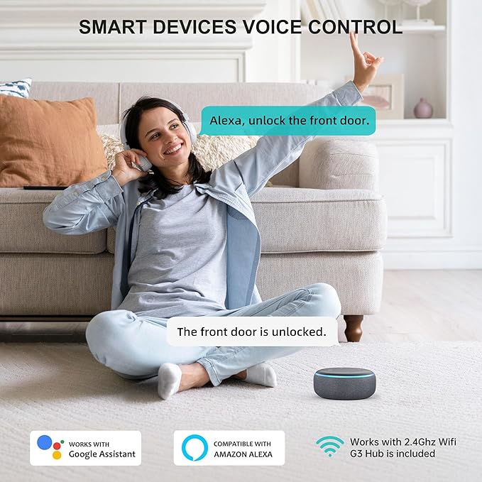 - 【Voice-Controlled Security for Your Home】Hornbill Smart Lock integrates smoothly with front/back doors. Includes G3 gateway for 2.4GHz WiFi. Control with Alexa or Google Home voice commands. Easily upgrade your home security with this smart lock.