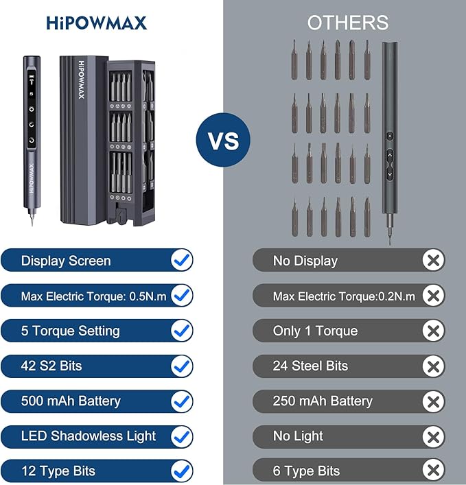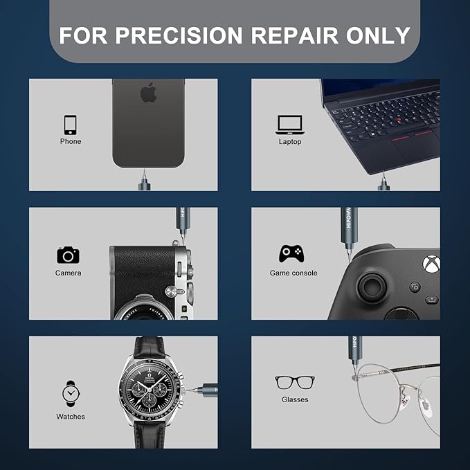 - Precise Control: With electric torques of 0.1 - 0.5 N·m. This electric precision screwdriver is perfect for working with precision screws, making assembly and disassembly quick and easy without damaging delicate equipment, such like computer, tablets, mobile phones, watches, electronic