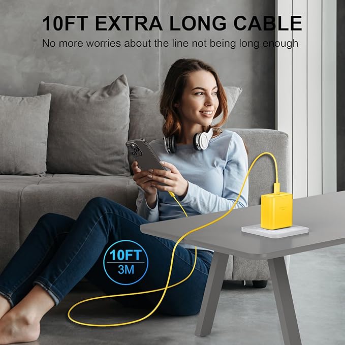 Phone 16 Pro Max Charger, 45W USB C Fast Charging Block With 10ft Long Type C Cable for Phone 16/15 Series, Pro/Plus Models - Yellow
