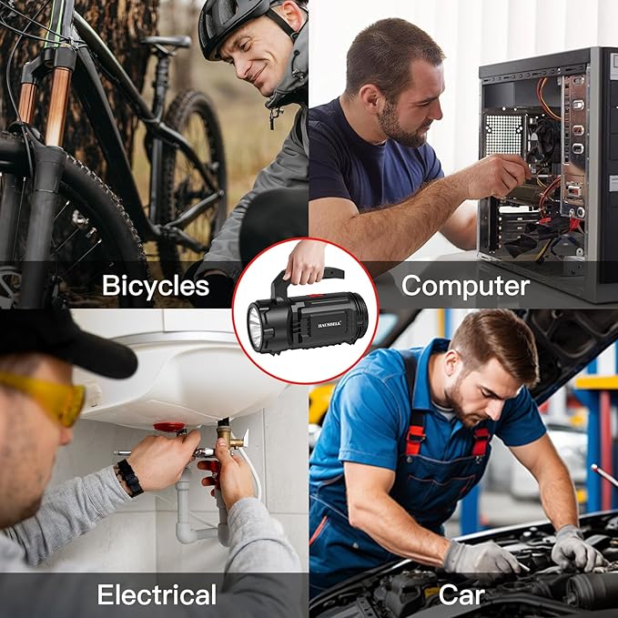 - Ultra-Bright Tool Light with Long-Lasting Power: Never work in the dark! Powered by 3 included AA batteries, our LED toolbox spotlight illuminates attics, campsites, or roadside emergencies. 30% brighter than standard flashlights with anti-slip grip for secure handling during critical tasks