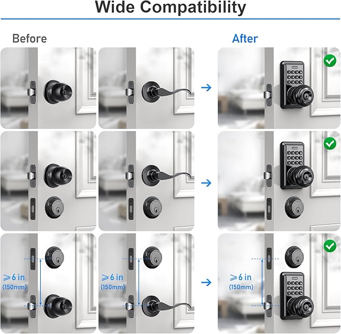 - Smart Home Integration: Simple to set up, works with Wi-Fi and easily pairs with Amazon Alexa or Google Home, control your keypad door knob with your voice and create helpful automations that keep your home secure.