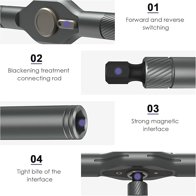 - Multi-Functional Magnetic Handle – Designed for dual functionality, this handle works as both a screwdriver and a mini wrench, seamlessly adapting to various tasks like DIY, home repairs, and automotive maintenance. The handle features a strong built-in magnet that firmly holds the bits, while an integrated magnetization slot allows you to enhance bit magnetism on demand, ensuring effortless use and easy portability.
