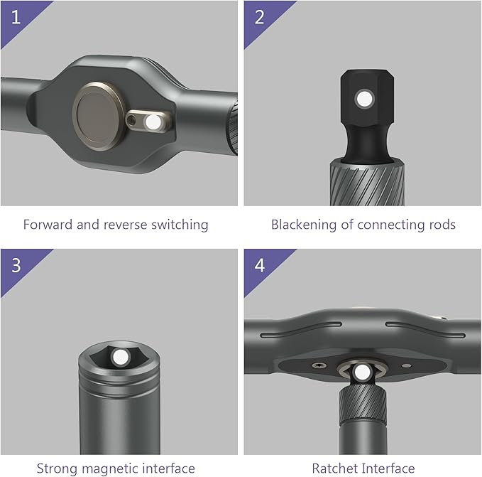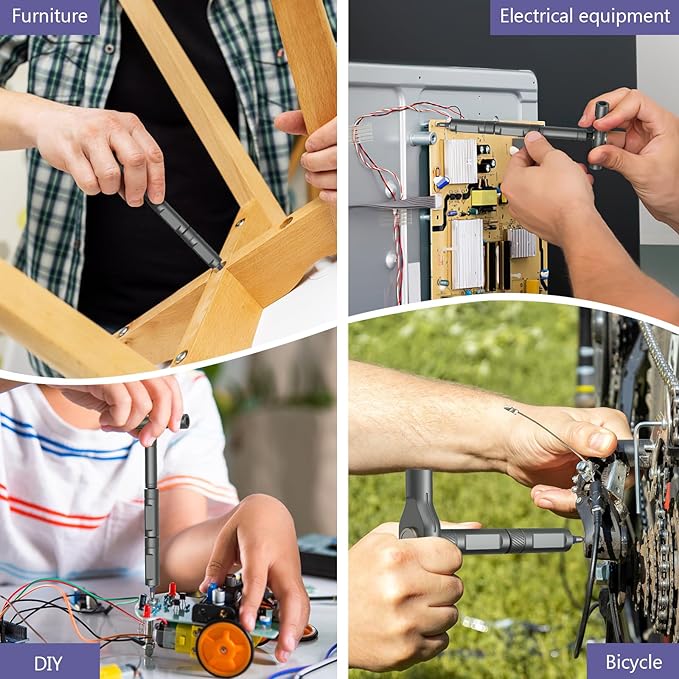 - Multi-Functional, Sturdy, Lightweight Handle: The detachable aluminum handle is crafted through high-precision CNC molding and hot forging, offering both durability and lightweight comfort, ideal for prolonged use and tight spaces. Serving as both a screwdriver and a mini wrench, this adaptable tool handles various tasks efficiently, from household and electronics repairs to automotive maintenance.