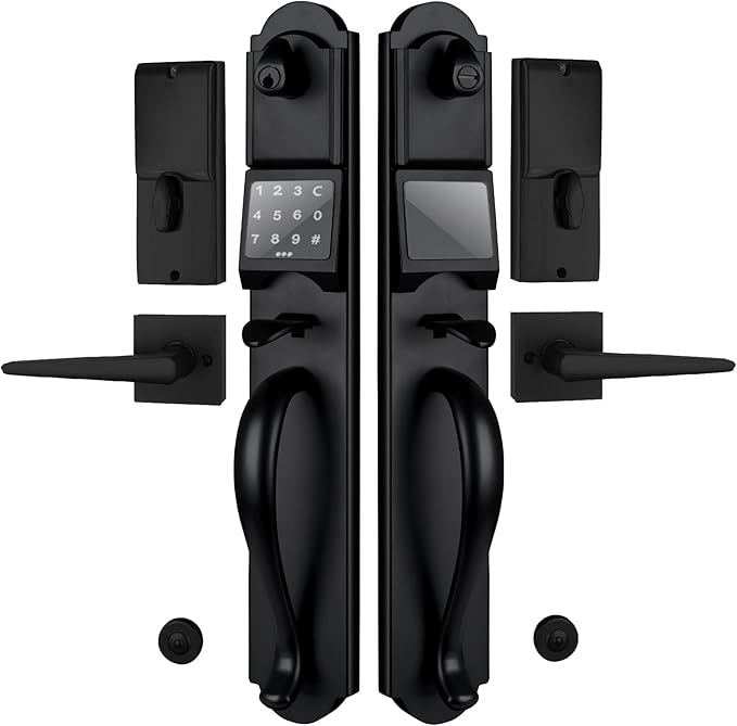 Keyless Entry Door Lock Set, Heavy Duty Smart Double Door Handleset with Touchscreen Keypad, Electronic Keyed &Dummy Exterior Door Lock Set, Left Handed, 17.52'' Length