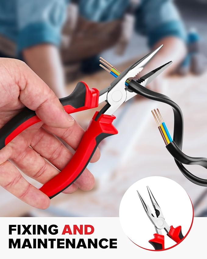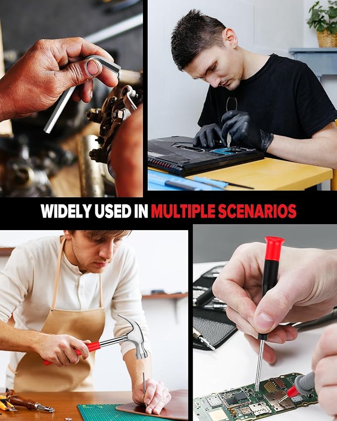 - Toolbox Included:This tool set comes with all the most useful tools for home maintenance and daily use. It includes 1PC handle, 10PCS bits, 5PCS hex key, 2PCS Precision screwdrivers, 1PC 6"long nose pliers, 1PC Claw hammer(8oz), 4PCS sockets(7,8,9,10)