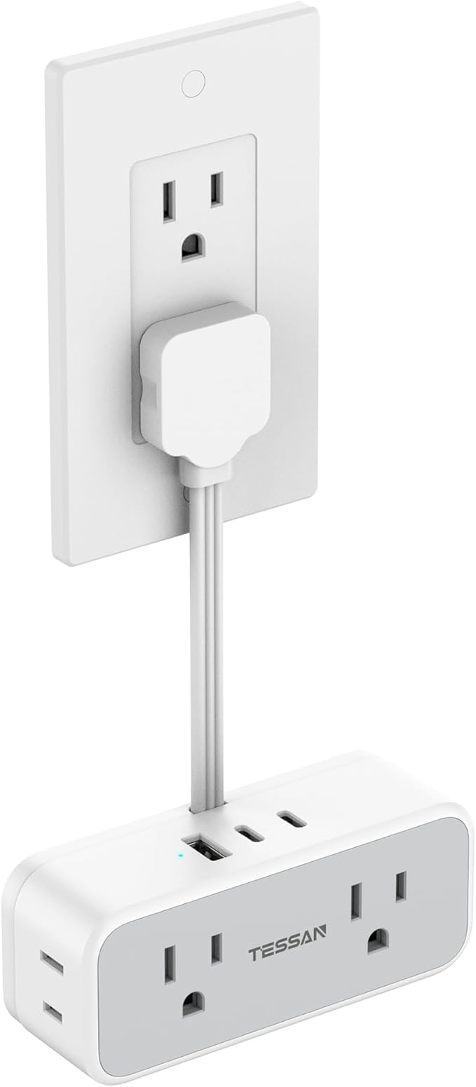 - Flat Plug Extension Cord: With a 0.33 inch depth ultra-thin design, TESSAN power strip flat plug can be easily hidden in tight spaces; The flat wall extension cord is better hidden under carpets, preventing trips, and can even fit through door gaps