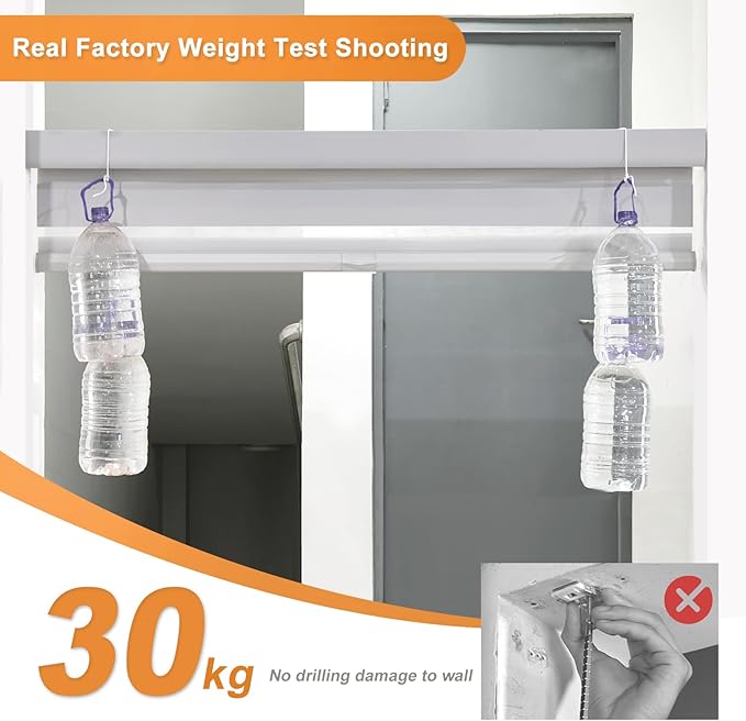 - 【No Drill Design】The punch-free installation design minimizes damage to the wall compared to the traditional punch installation method. The metal material on the side makes the device more solid and the blind better quality.