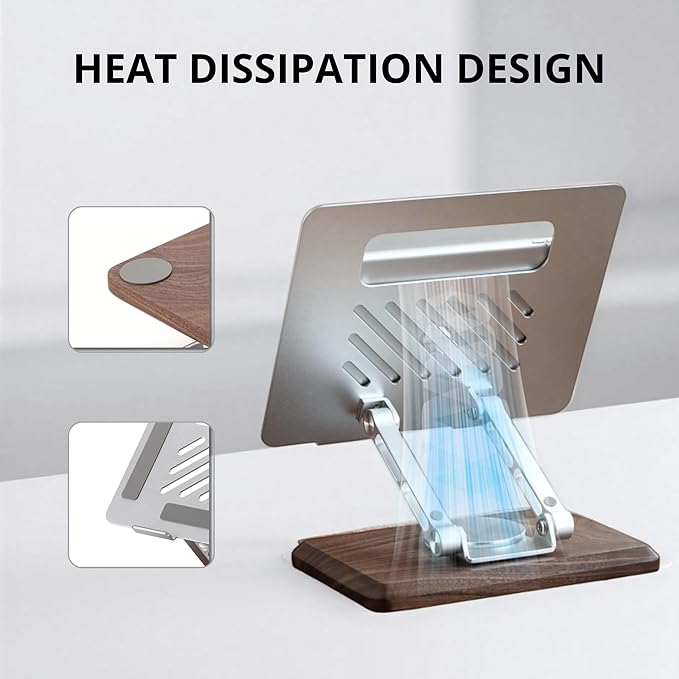 - High Quality Stable And Non-Slip Design - Aluminum alloy solid frame with black walnut thickened base, both beautiful and stable, with a maximum load capacity of up to 10kg, easy to cope with all kinds of equipment. Multiple wide silicone anti-slip strips, strong anti-slip and protect equipment from scratches