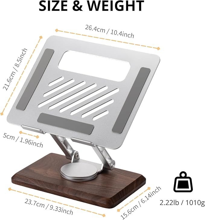 - 360 Degree Rotation And Stepless Height Adjustment - Muso wood laptop stand can be rotated 360° freely with stepless height adjustment in two axes. Flexible angle and height adjustments precisely fit individual needs, effectively improve posture and enhance work efficiency