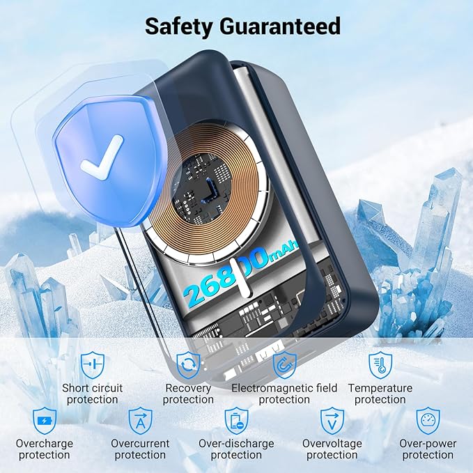 - 【26800mAh Large Capacity & Wireless Charging】YONHUIZI portable magnetic wireless power bank boasts an impressive 26800mAh battery capacity, the Portable Charger adopts the latest magnetic suction technology, for cell phones and cases with magnetic suction function can be instantly sucked and quickly charged.
