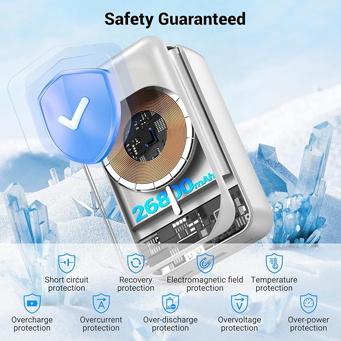 - 【26800mAh Large Capacity & Wireless Charging】YONHUIZI portable magnetic wireless power bank boasts an impressive 26800mAh battery capacity, the Portable Charger adopts the latest magnetic suction technology, for cell phones and cases with magnetic suction function can be instantly sucked and quickly charged.