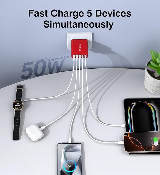 ![[2-Pack] USB C Wall Charger, 50W Fast USB C Charger Block, 5-Port PD Power Adapter + QC Wall Plug Multiport Type C Charging Block Cube Compatible with iPhone 16 15 14 13 12 11 Pro Max XR XS, Red](http://hometinkers.com/cdn/shop/files/71dYwj-gP9L._AC_SX679.jpg?v=1758770520&width=1445)