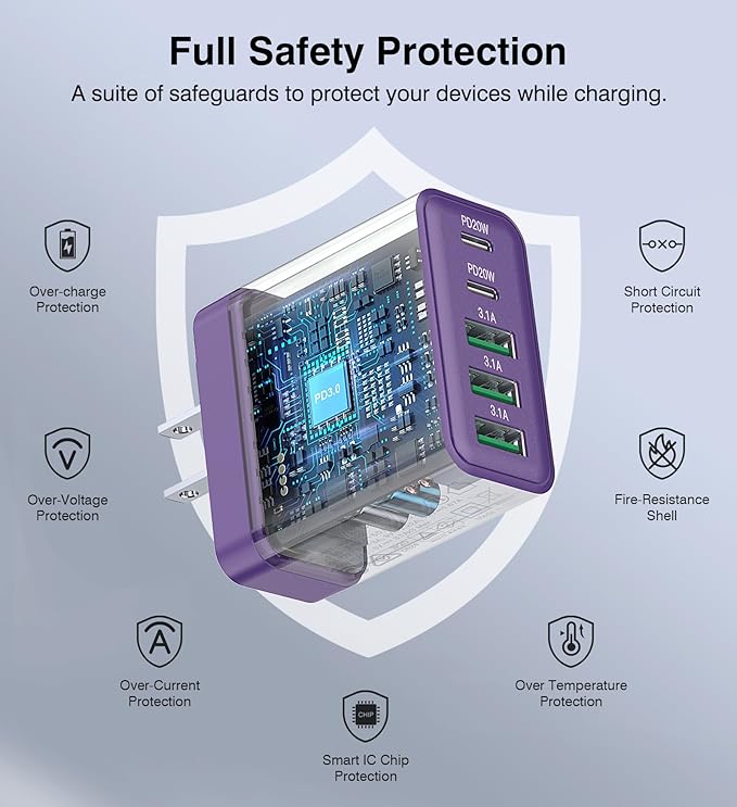 ![[2-Pack] USB C Wall Charger, 50W Fast USB C Charger Block, 5-Port PD Power Adapter + QC Wall Plug Multiport Type C Charging Block Cube Compatible with iPhone 16 15 14 13 12 11 Pro Max XR XS, Purple](http://hometinkers.com/cdn/shop/files/71r0gWT9K6L._AC_SX679.jpg?v=1758770527&width=1445)