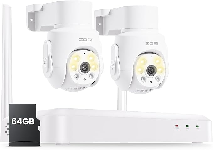 ZOSI 8 Channel 3K Wi-Fi 6 Security Camera System with 64G Memory Card for 24/7 Record, 2 x 5MP Pan Tilt WiFi Camera with Auto Tracking, Color Night Vision, Plug-in, AI Person Detect, 2-Way Audio