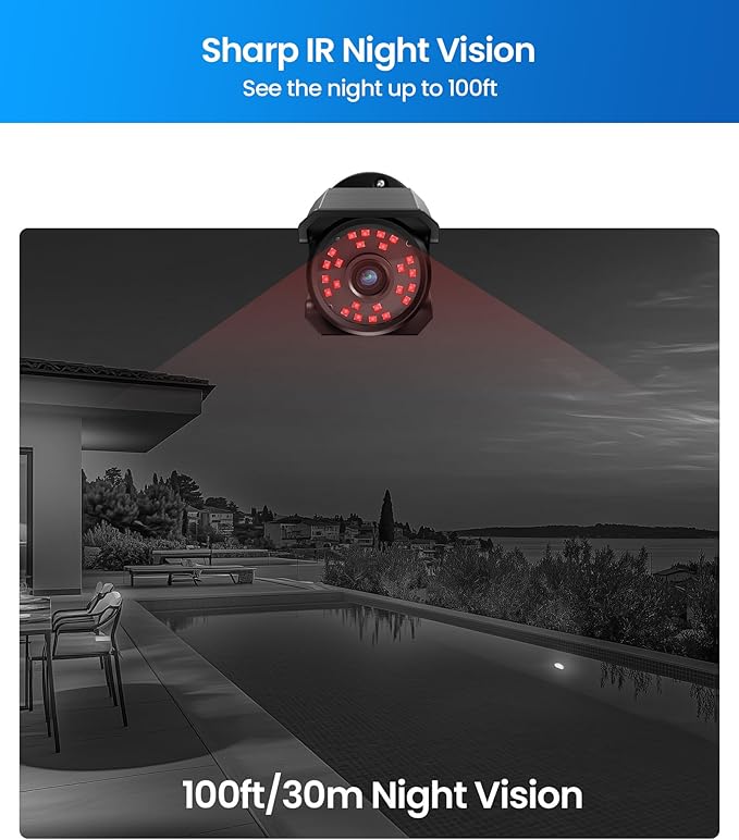 - (1). [ 4K Ultra HD & Night Vision ] __ With 4K resolution, delivering four times the pixels of 1080p, this system provides sharper images and true-to-life colors, even when digitally zoomed. It includes our H.265+ 8CH 4K PoE NVR Recorder with audio recording and 4 X 8MP weatherproof IP cameras equipped with 100ft IR night vision for complete visibility in darkness, giving you professional-grade security for your home or business.